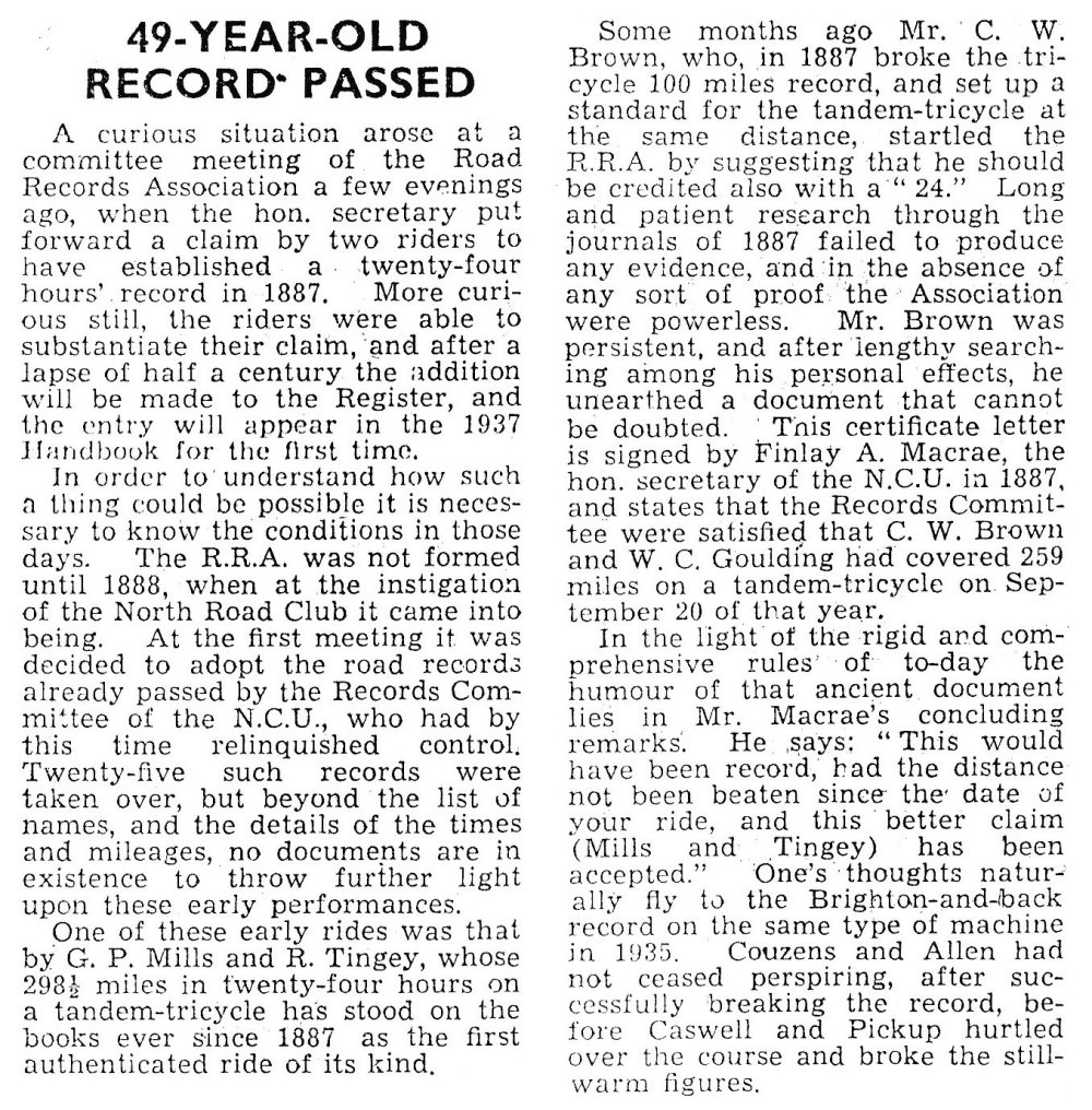 Finally, on the topic of the 24 hour record, an item from a 1935 edition