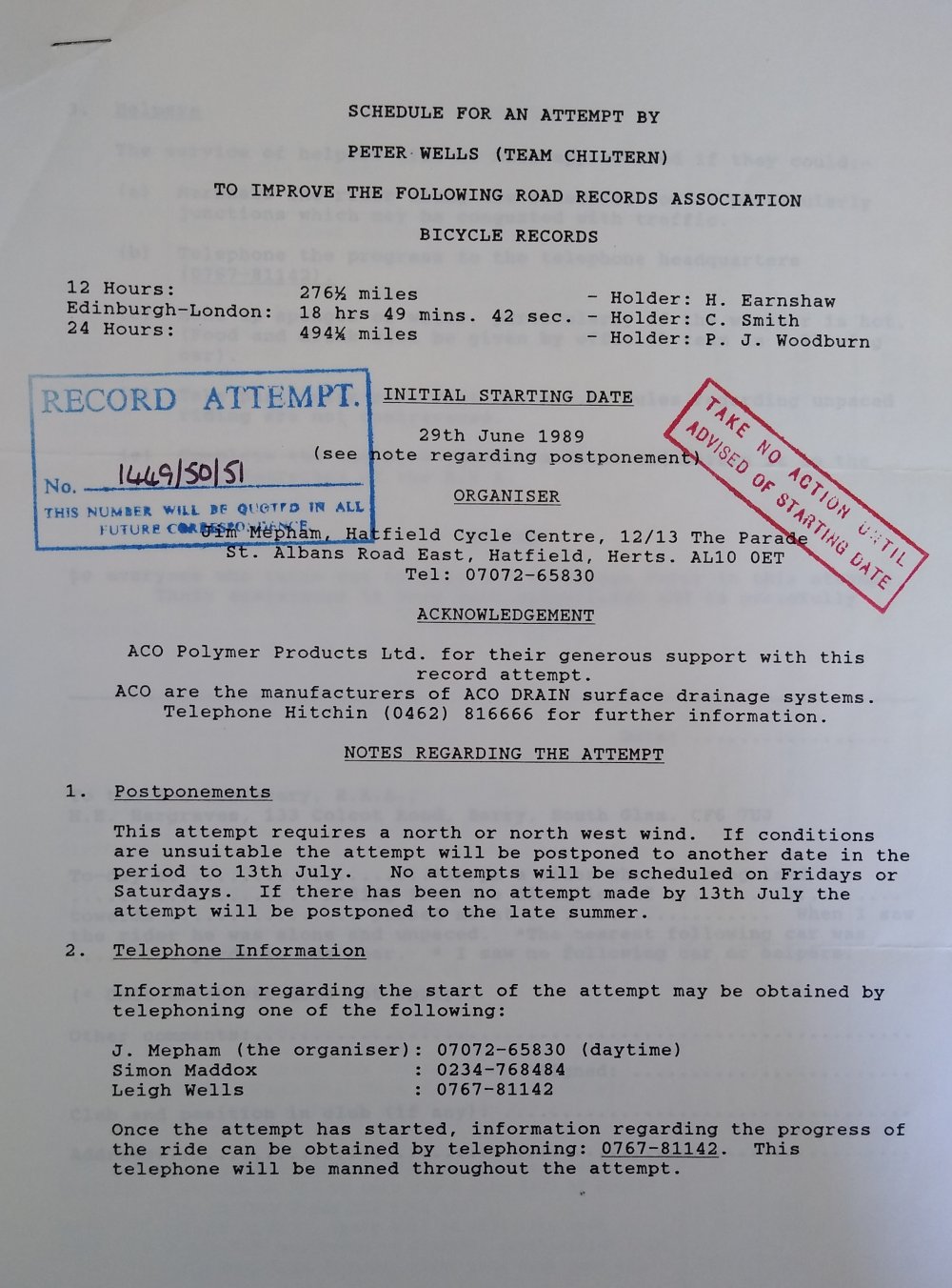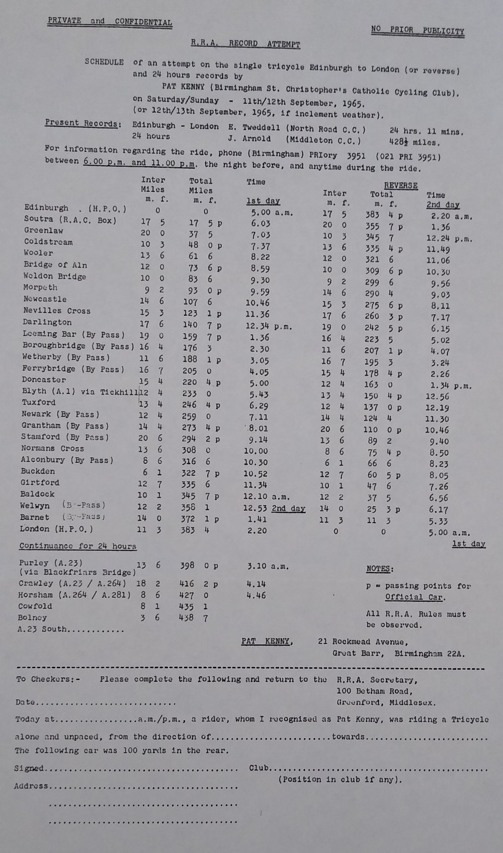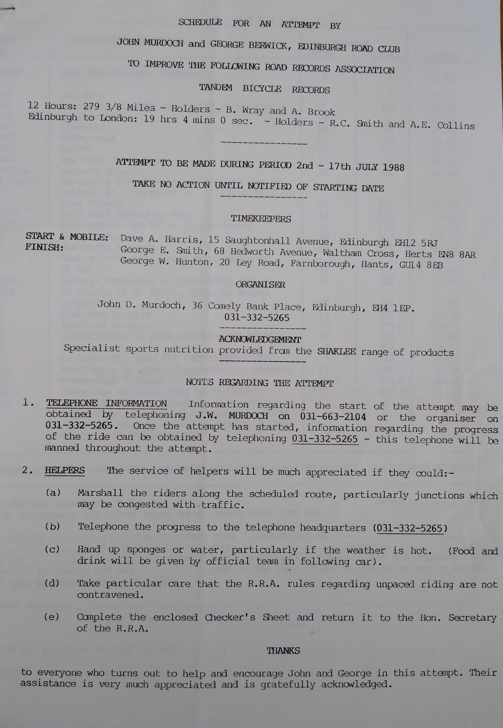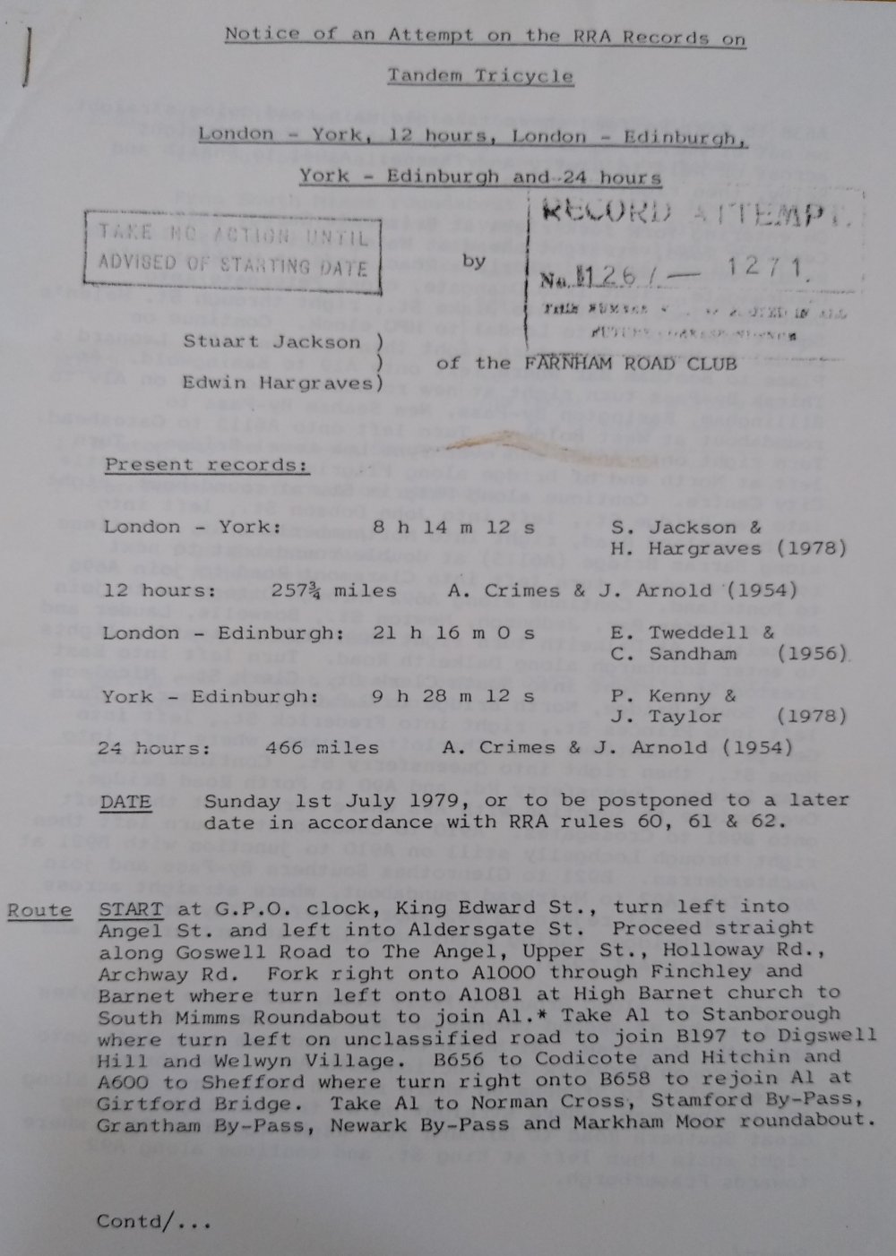 Edinburgh-London bicycle records in 1979