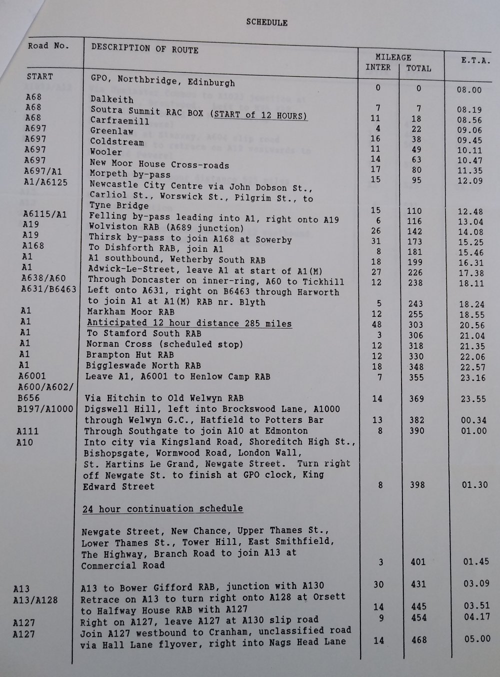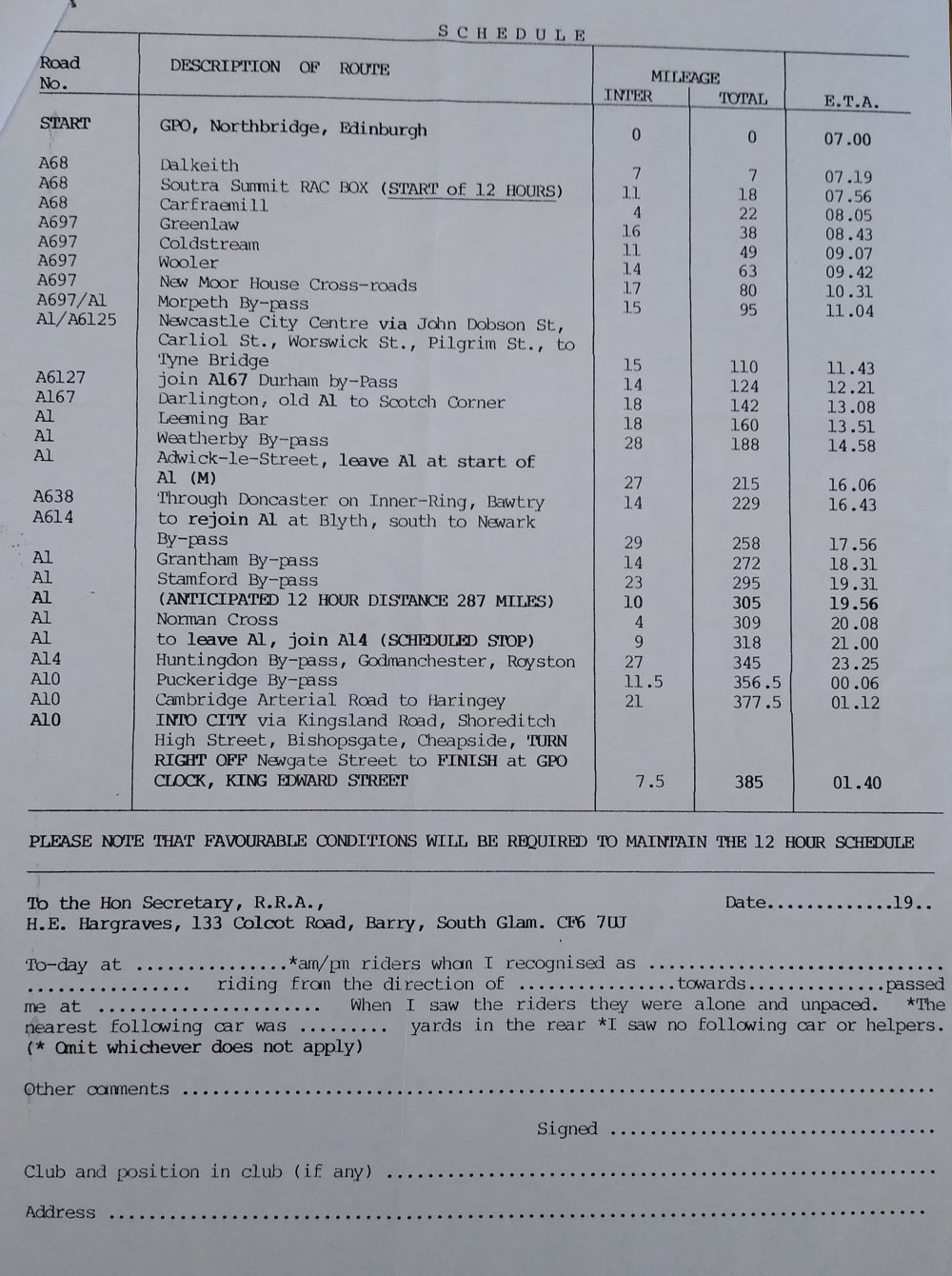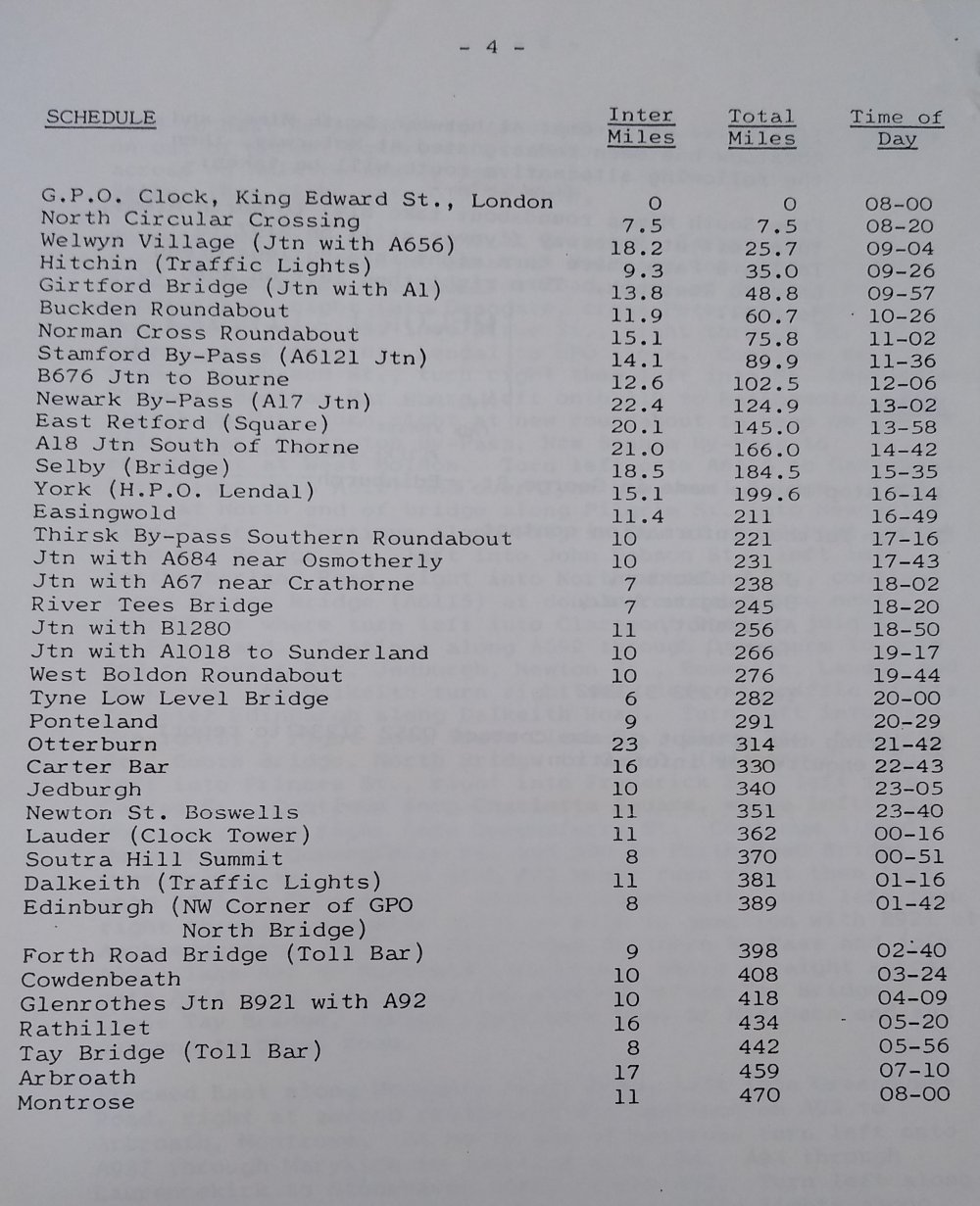 Here are some schedules for Edinburgh-London from other riders.