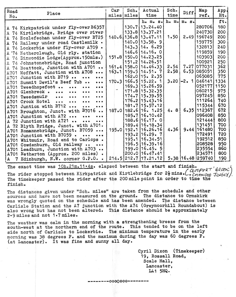 And now the incredibly detailed Observer's Report from Cyril Dixon.