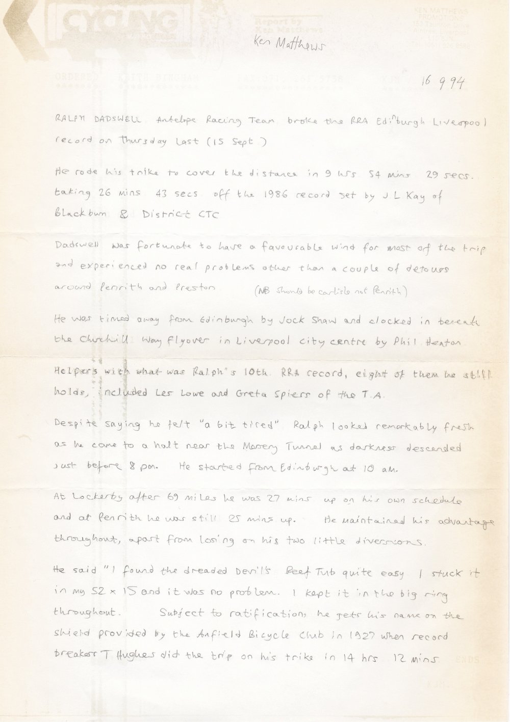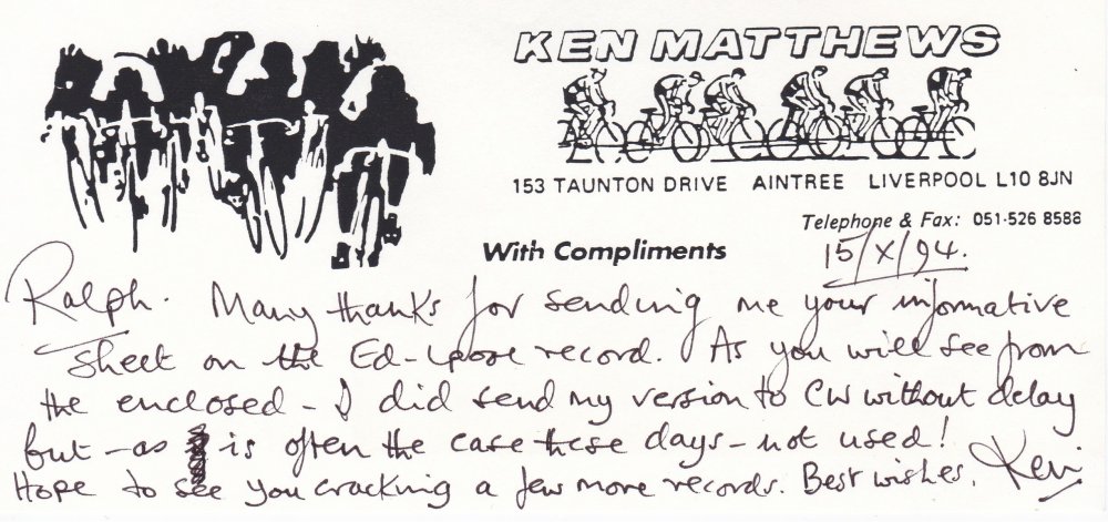 Ken Matthews tried to get Cycling Weekly to print something, but was